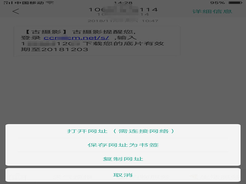 如下圖所示這樣的格式是正確的,網址部分呈藍色,這樣是可以正常打開的短信